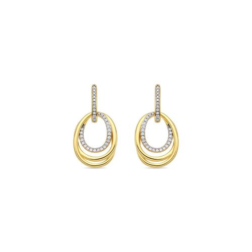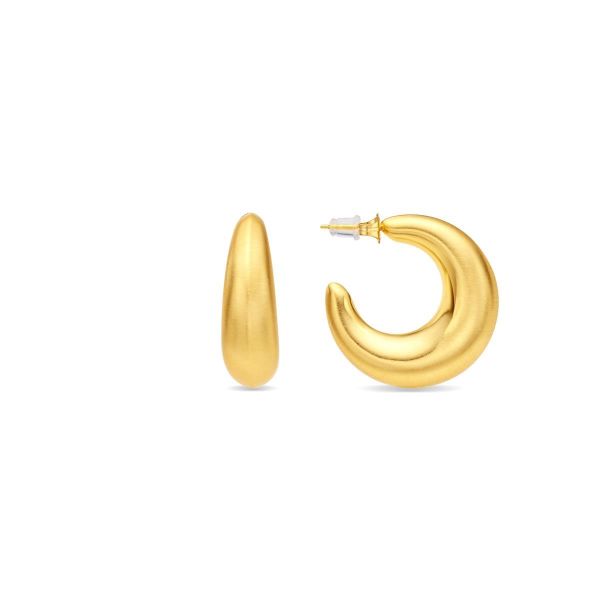 Elegantes y contemporáneos aros de gran tamaño con acabado en oro y superficie satinada que aporta un brillo suave y sofisticado. Su diseño curvado y volumen definido crean una silueta moderna y favorecedora que enmarca el rostro con estilo.