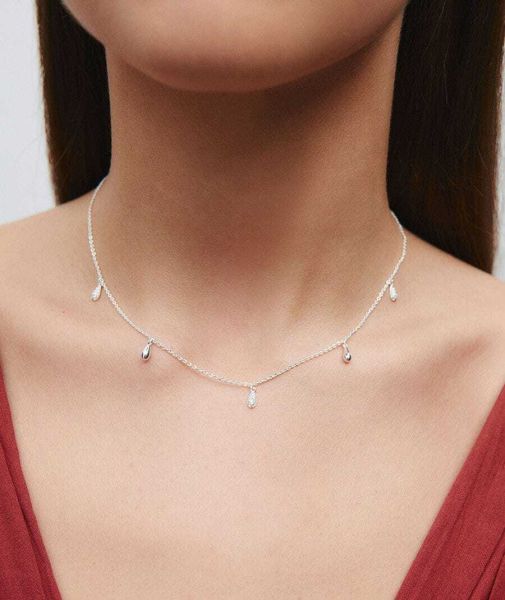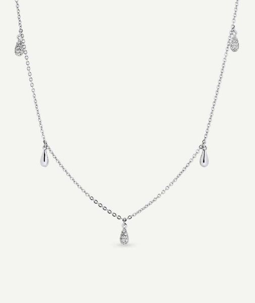 Collar con mini lágrimas Drop bañado con un espesor de plata de ley 925 de 5 micras o más, lo que garantiza una mayor durabilidad y brillo prolongado. Engastado con circonitas blancas, cuya similitud con el diamante es casi indistinguible. Tiene una longitud de 39 cm + 5 cm de cadena ajustable.