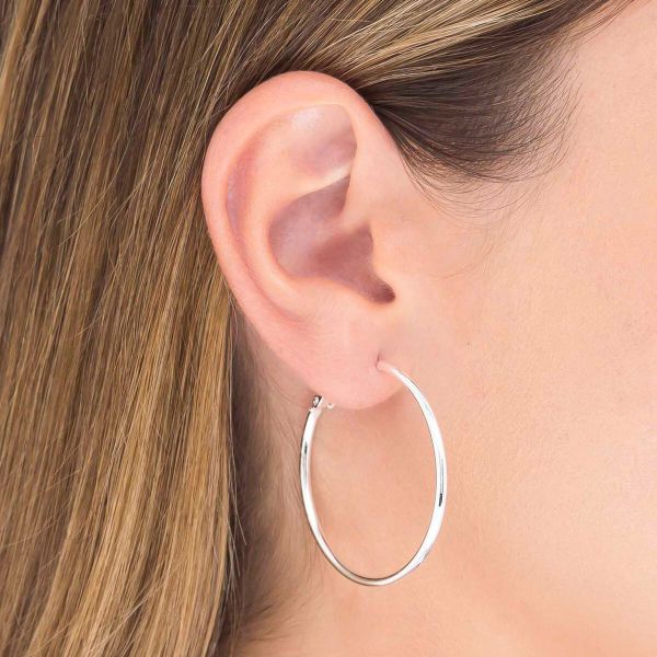 Pendientes Colección Essentials Chapado en Plata redondos L 2 x 40 mm. Pendientes perfectos para lucir con tus looks de díario o para un evento especial.