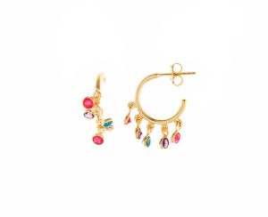 Pendientes Salvato re Mujer Aro Plata Baño Oro y Piedras Multicolor 163A0482
