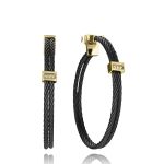 Unos pendientes que fusionan elegancia y modernidad en un diseño audaz. Fabricados en acero con acabados IP negro y dorado, presentan un doble cable unido por una barra central, creando un efecto dinámico y sofisticado. Las circonitas engastadas añaden un toque de brillo luminoso que resalta la pieza con elegancia. Con un diámetro de 4,5 cm, estos pendientes tienen la medida perfecta para destacar con distinción sin perder la ligereza. Ideales para mujeres que buscan un accesorio contemporáneo que combine estilo, versatilidad y un toque de luminosidad. Diámetro 4,5 cm.
