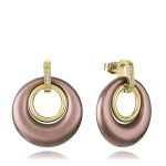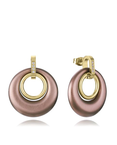 Pendientes de mujer de acero Ip marrón y dorado con circonitas blancas y aros colgantes Ref: 15198E01012