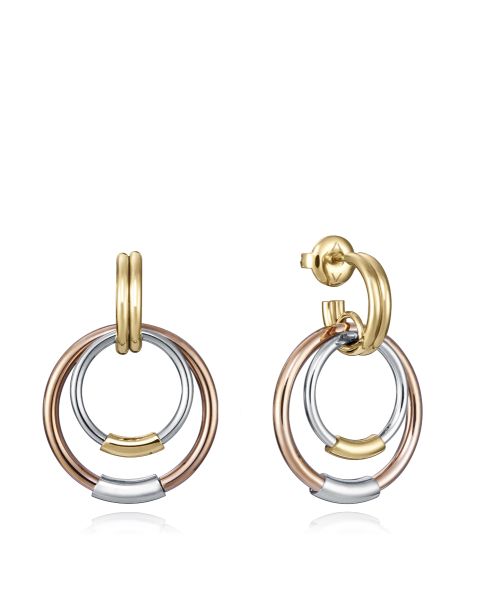Dale un toque distinguido a tu look con estos pendientes formados por varios aros que combinan dorado, plateado y bronce. En total, 2,9 cm de belleza y sofisticación para completar tu mejor outfit. Solo al combinar los mejores materiales con los diseños más refinados se consiguen piezas como esta. Única de Viceroy. Longitud: 2,9 cm.