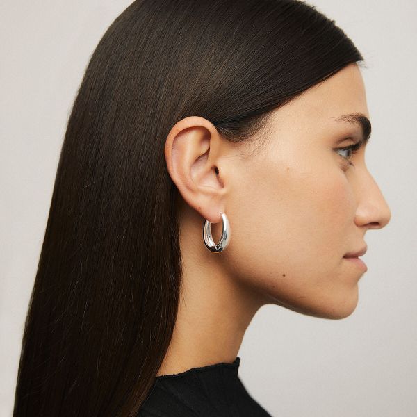 Los Pendientes Cocut de la colección Básicos están chapados en Plata de Primera Ley. Con un elegante diseño de aro articulado, estas piezas de 24,50 x 8,50 mm son el complemento perfecto para cualquier ocasión.