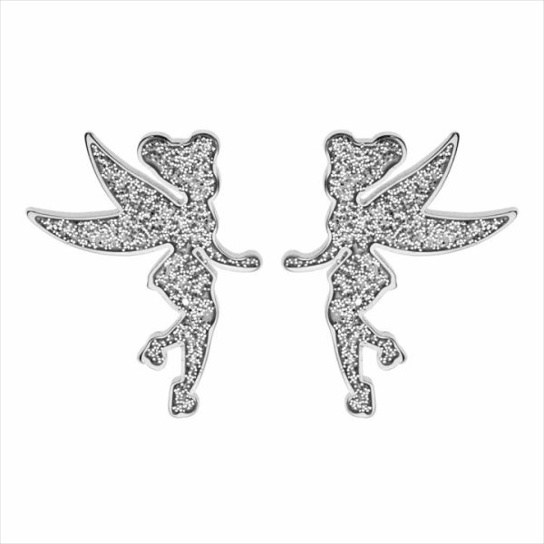 Pendientes de acero en forma de Campanilla cubiertos con purpurina plateada. Cierre presión.