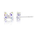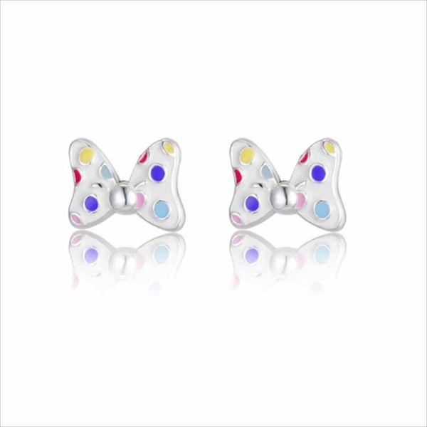 Pendientes en plata de ley lazo Minnie con esmalte blanco y puntitos de colores