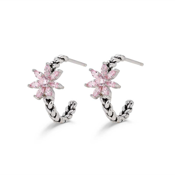 Diseño: Aro trenzado con flor de circonitas rosas