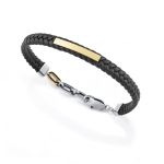Pulsera de hombre de acero Ip dorado con placa y piel trenzada negra Ref: 14332P01012