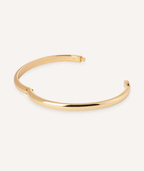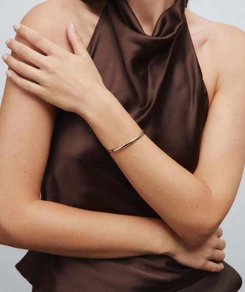 Brazalete rígido Allure bañado con una gruesa capa de oro macizo de 18 kt, lo que garantiza una mayor durabilidad. Tiene un diámetro de 60 x 48 mm.