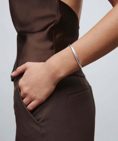 Brazalete rígido Allure bañado con una gruesa capa de Plata de ley 925, lo que garantiza una mayor durabilidad. Tiene un diámetro de 60 x 48 mm.