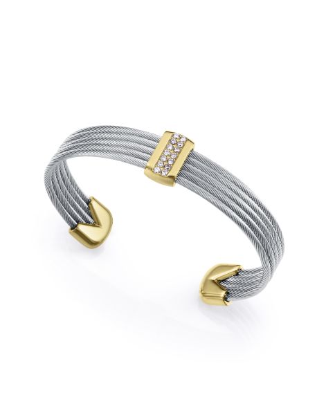 Pulsera de mujer de acero Ip dorado multiples cables unido con barra con circonitas Ref: 15193P01000