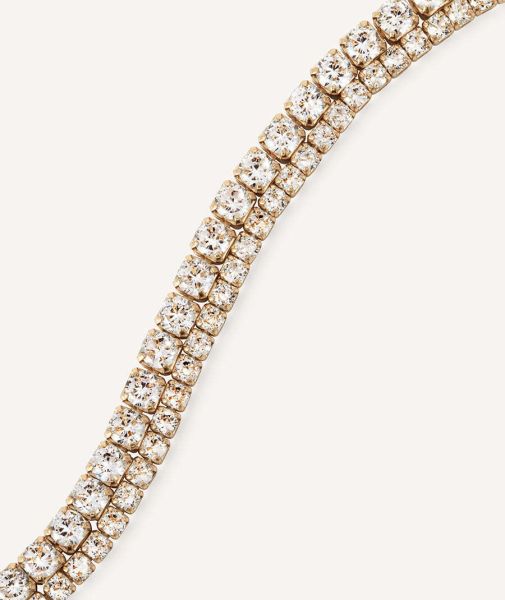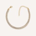 Pulsera fina Lucent bañada con una gruesa capa de oro macizo de 18 kt, lo que garantiza una mayor durabilidad. Engastada con circonitas blancas, cuya similitud con el diamante es casi indistinguible. Tiene un diámetro de 17 cm + 5 cm cadena ajustable.
