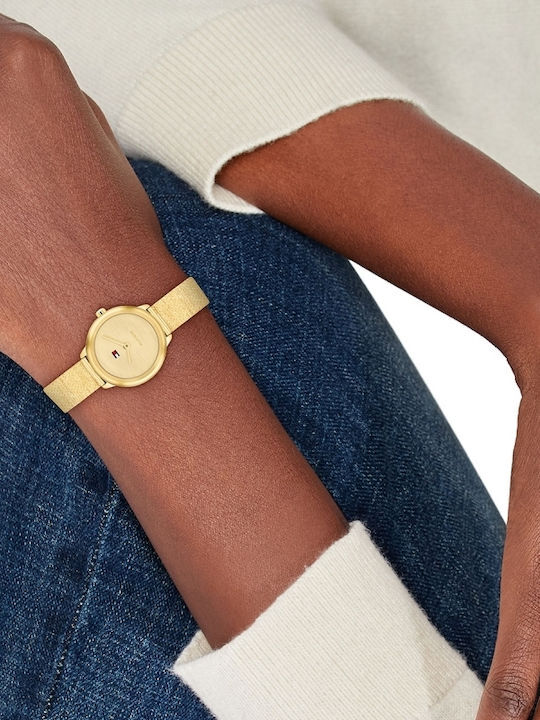 Esfera: Dorada con el icónico logotipo de Tommy Hilfiger
